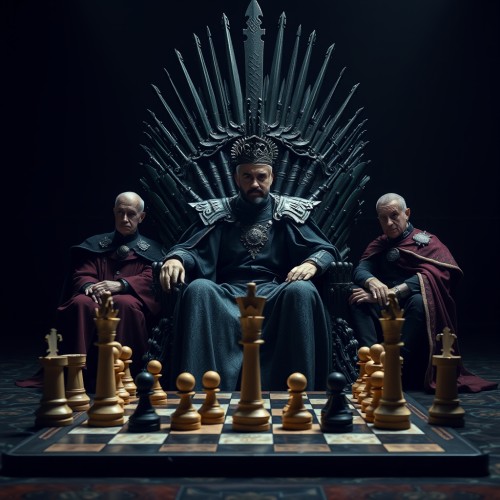 a caramel tone king in a royal throne in a golden jeweled crown and dressed in black and gold --v 6.0