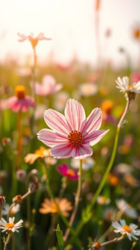 A close-up of a tiny fairy-like cat, fluffy white fur and big sparkling eyes, sitting in the center of a delicate pink flower. The flower petals are soft, layered, and covered in dewdrops, creating an ethereal scene. Backlighting makes the petals slightly transparent, casting a gentle glow around the cat, giving it a magical aura. Created using: hyper-realistic details, soft focus on edges, delicate lighting, pastel color palette --v 6.1 --ar 9:16 --no kimono
