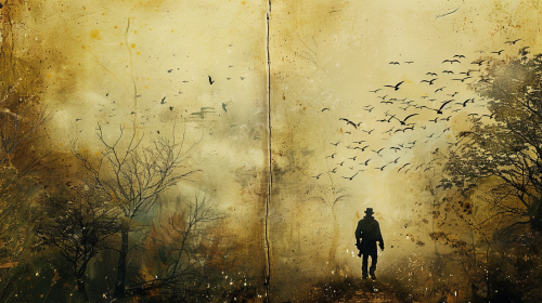 #103940 a man with a white cat in a house in the middle of the forest looks at the driving sky through a telescope --v 6.0 --ar 4:7