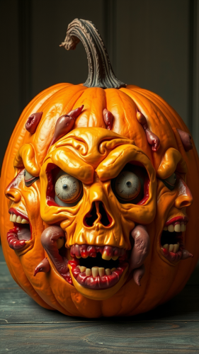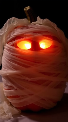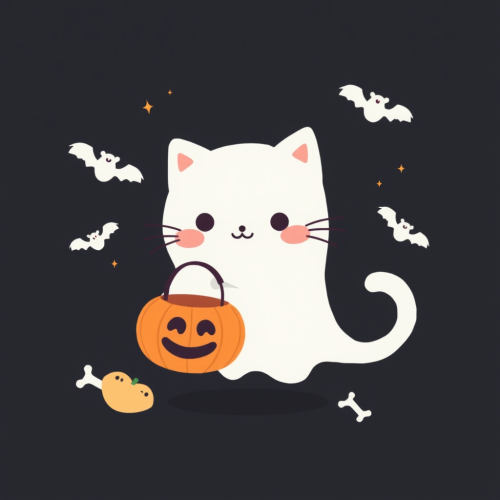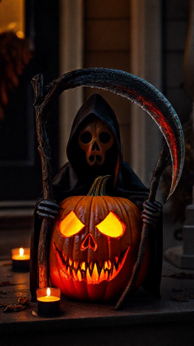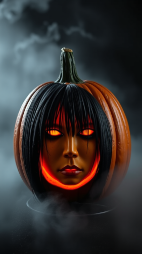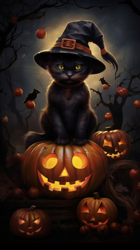 Wallpaper of halloween, pumpkins, witches, skulls, black cat, style: rubbery, --ar 9:16 --v 5.2