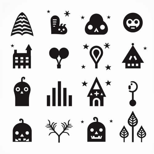 flat icon halloween theme pattern white background, only black and white colors, creepy, thick lines.