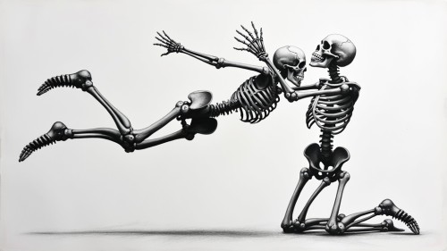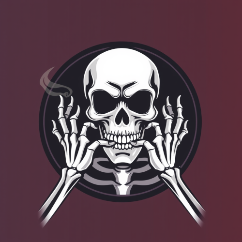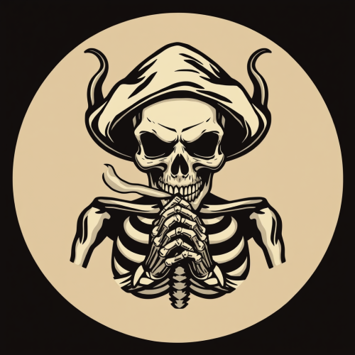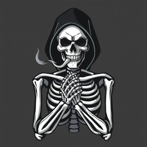 The Skeleton with Skull Smoke Mask and Clasped Hands