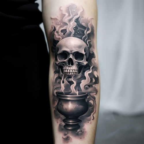 a black and gray tattoo of a candle burning and it’s very Smokey coming off the flame of the candle and above the candle is a skull forming in the smoke