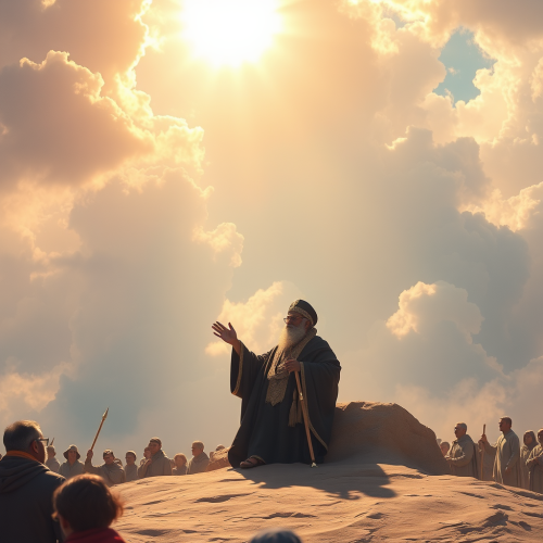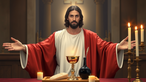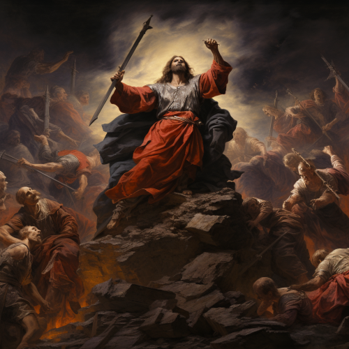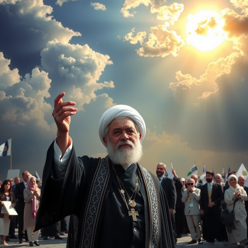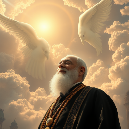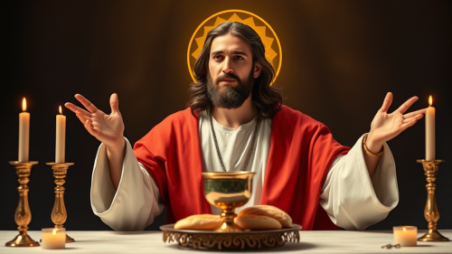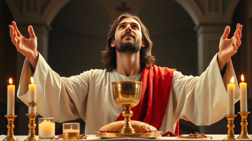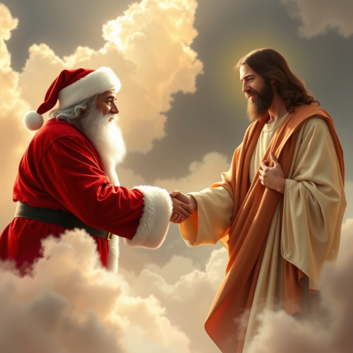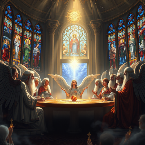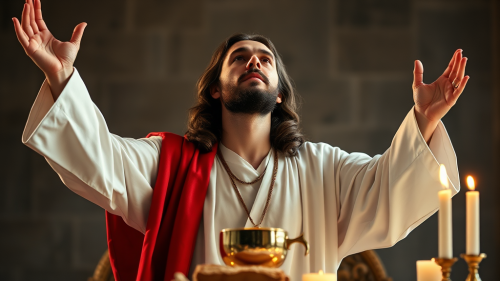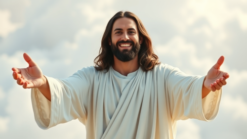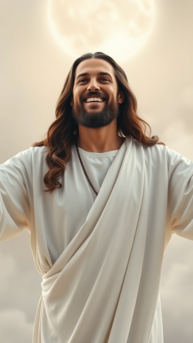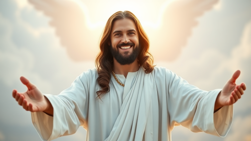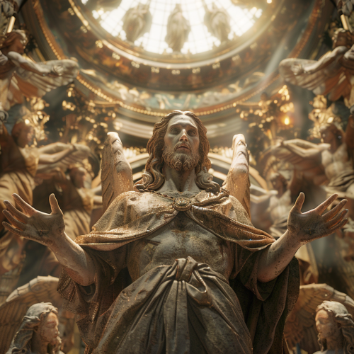 : a photorealistic depiction of Jesus as The Lord of the Hosts of Heaven, showcasing epic composition with Unreal Engine enhancements. Incorporate cinematography techniques, ultra-wide angle and deep depth of field for a hyper-detailed view. Ensure beautifully color-graded scenes using ProPhoto RGB for an insane level of detail and intricate designs. Aim for a 32k super-resolution to capture every element in stunning clarity. Utilize cinematic, volumetric, and moody lighting to highlight the divine atmosphere, with ray tracing for natural and supernatural illuminations. Add a touch of elegance with dynamic poses and editorial photography quality, ensuring every detail from the soft shimmering lights to the intricate shadows are beautifully captured and color-coded. The scene should be set in a heavenly realm, with Jesus commanding angelic hosts, embodying power and serenity. Use a 16:9 aspect ratio for a wide cinematic view, aiming for an ultra-HD 8k resolution to bring this celestial vision to life with hyper-realistic details and a photorealistic finish.