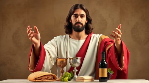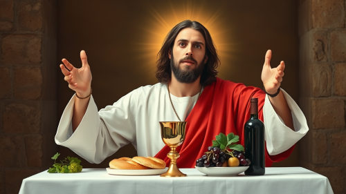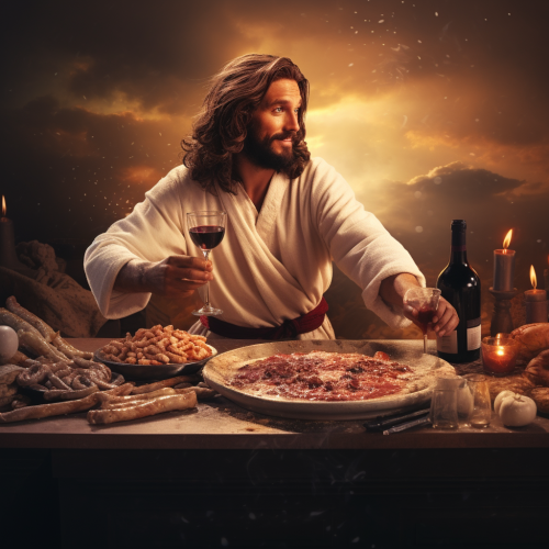 Jesus Christ on the heaven preparing pasta bolognese, few bottles of wine near, 4k, high detailed