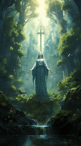 anime scenery, back round, HEAVEN atmosphere, forest, THE BLESSED MOTHER of Jesus --ar 9:16 --v 5.2 --s 250