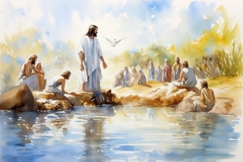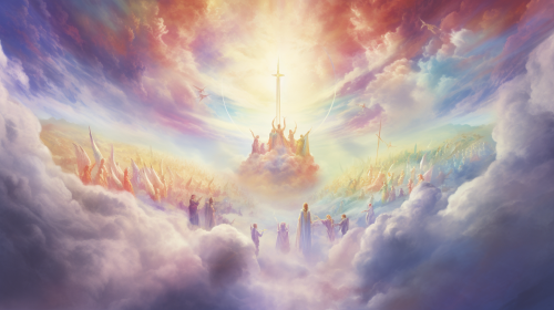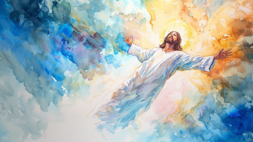 water color painting of Jesus acending to heaven, --ar 16:9 --v 6.0