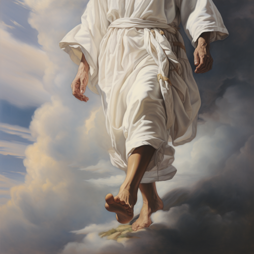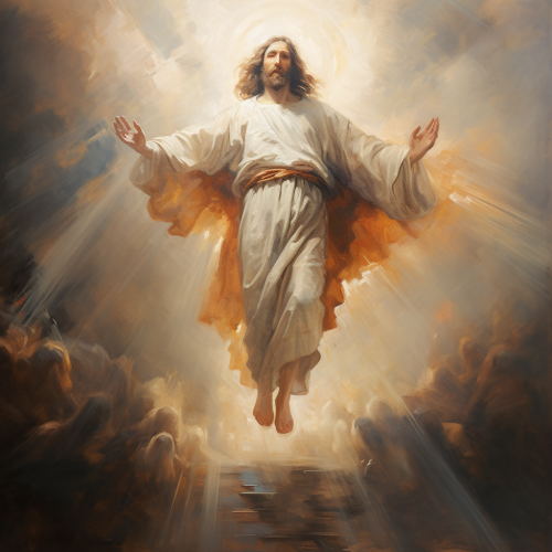 oil painting of Jesus, heavy brush strokes, ascending to heaven, in the artistic style of Rembrandt