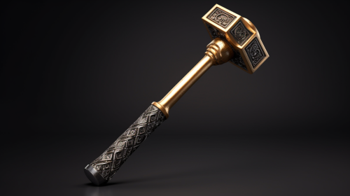 baroque style, blacksmith hammer, square type head, metal handle with gold, 3d game concept --ar 16:9