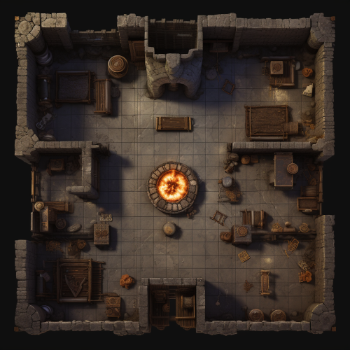 : dungeons and dragons map. blacksmith smithy top down view. blacksmith