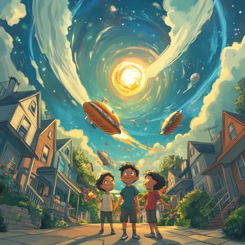Three kids trade a corndog for a spaceship, blast off into space, accidentally break the universe, and have to find their way back to their little street where all the houses look the same.