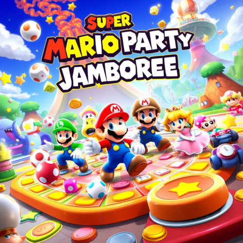 A colorful cartoon car with four characters inside, driving on the road in space, surrounded by planets and spaceships, with an adorable robot sitting at its helm, depicted as cute animated illustrations. The scene is designed to be cheerful and playful, suitable for children's animation or visual storytelling, featuring bright colors and exaggerated character designs. --ar 121:68 --s 50 --niji 6