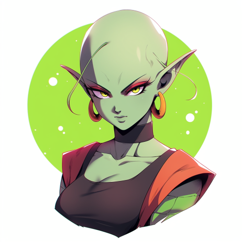 a female namekian, bald, as a Dragon Ball Super character, headshot, bright, --niji
