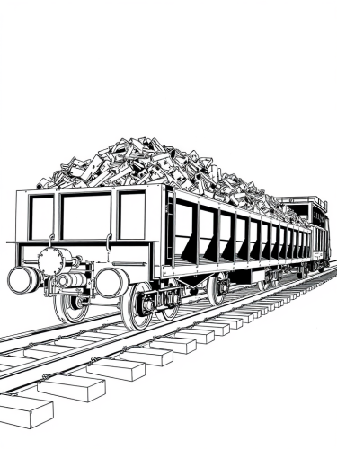 A schematic, technical drawing of a smaller cargo-bed truck delivering bags of recyclable plastic to a buyer's facility. The facility features machinery for shredding and converting plastic into pellets, with visible equipment and workers operating the machinery. The scene is set in an industrial area, with workers unloading bags from the truck. The illustration should have a clean, blueprint-like style, with basic colors and clear lines, focusing on functional depiction and detail.