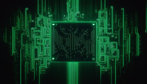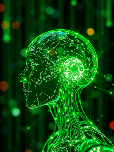 Background in the form of a matrix in the middle of the birth of artificial intelligence. shot on IMAX Laser --ar 16:9 --v 4 --s 750 --upbeta