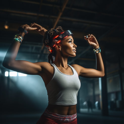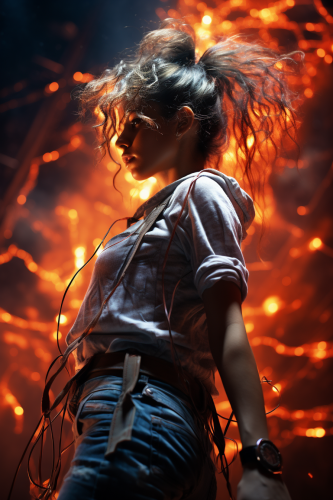 an experimental photograph of a beautiful female backup dancer, in the style of progressive rhythmic trance, progressive slam dance, deep bass, very confident, dream-like photography, beautiful details, natural light --s 350 --ar 2:3