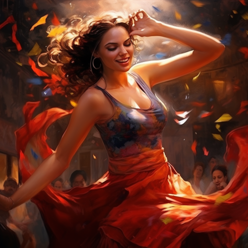**really realistic photo of a girl who IS dancing salsa with energetic vibe