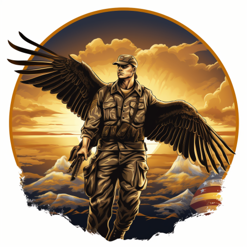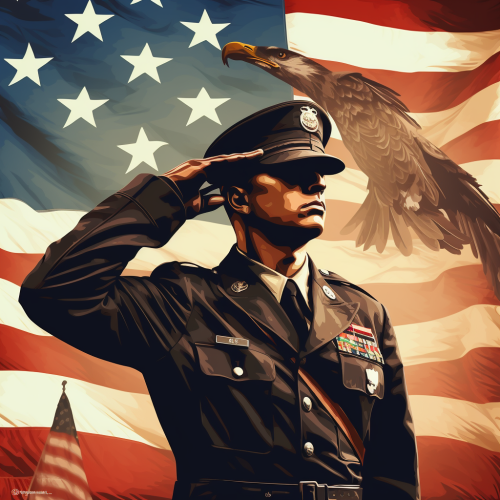 clip art of eagle soaring and army navy air force and marines saluting eagle. USA flag in the background. Veterans day.