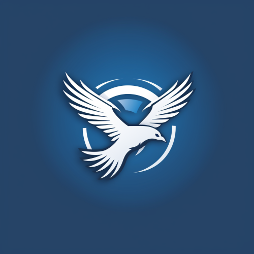 Logo design, clock, soaring eagle, sky blue, line super simple, asymmetrical