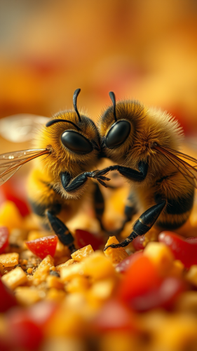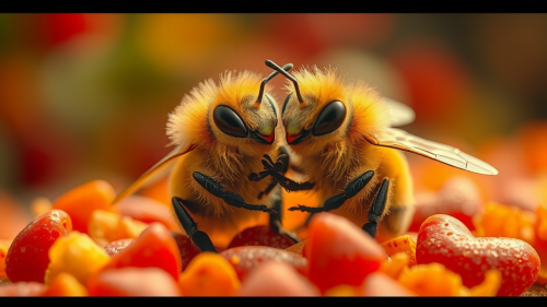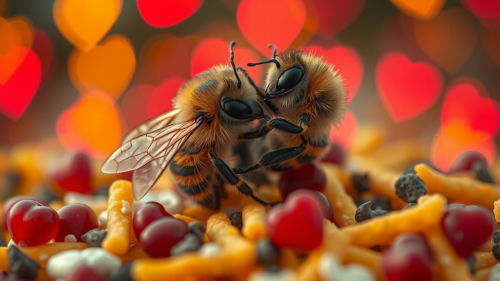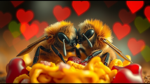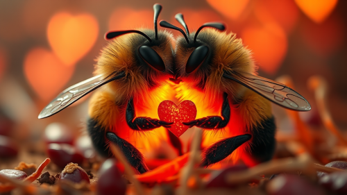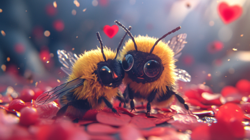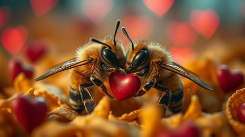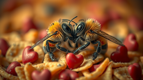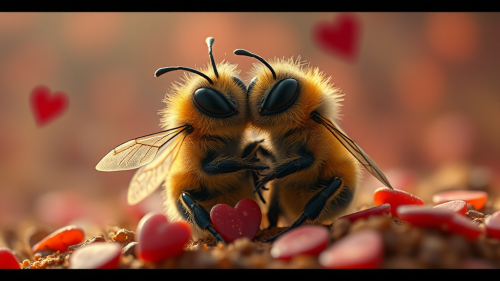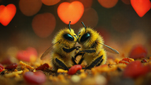 35mm cinematic film still of two very cute furry baby bees, cuddeling in love together in a land of nachos, red hearts, dusty, dof, bokeh, cinematic lighting, ultra-detailed, anime style --ar 16:9 --v 6.0