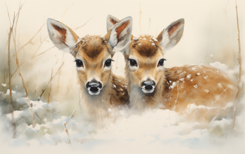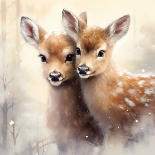 two baby deer cuddling in Christmas painting, snow, --ar 16:10 --v 5.2