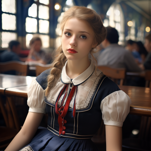 France as beautifull teatcher in school, low-cut neckline, photography, hyperrealistic, detailed, 16k, --v 5.2
