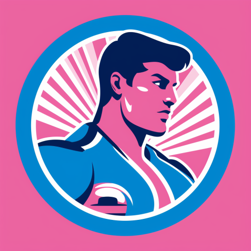 sports logo, high school wrestler in track uniform, pink and powder blue primary colors