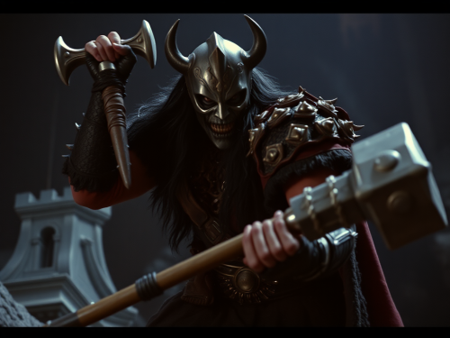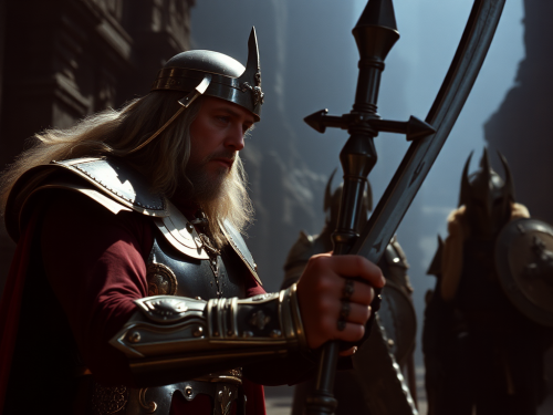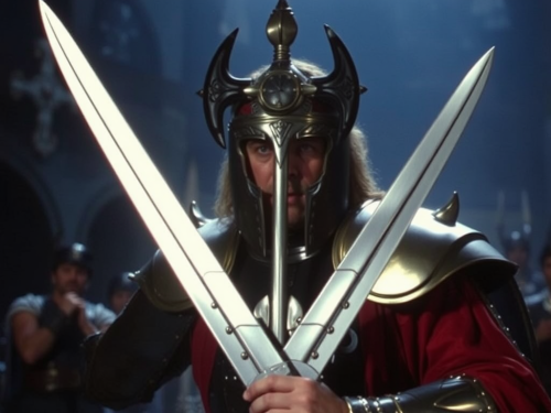 Live action God of war, DVD screengrab from 1982 movie, 1980s fantasy genre, 35mm film, panavision --ar 3:4 --style raw --v 6.0