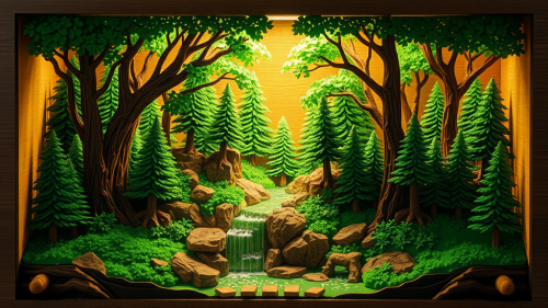 Design a luxurious, modern kitchen that seamlessly integrates with the natural environment of a mansion nestled under a waterfall. The kitchen should feature an open-plan layout with large windows that offer panoramic views of the surrounding lush greenery, allowing natural light to flood the space without focusing on the waterfall itself. The centerpiece of the kitchen is a grand kitchen island made of polished black granite with subtle white veining, giving it an elegant and modern look. The island should also include an integrated stove and a minimalist sink with a brushed stainless-steel faucet, maintaining the sleek, clean aesthetic. The countertops should be made of the same polished stone, creating a harmonious flow throughout the space. Cabinetry should be made of rich, dark wood, with a matte finish, to create a warm contrast against the sleek stone surfaces. The cabinets should be handleless for a streamlined, modern look, and equipped with hidden LED lighting underneath to softly illuminate the countertops. The kitchen should be equipped with state-of-the-art, integrated appliances, all hidden behind custom cabinetry to maintain the clean lines of the design. Large windows should line one wall, with automated blinds for privacy when needed, while another wall should house sleek, vertical wooden slats that add a modern, architectural element to the space. In the center, a modern dining area with a rectangular, matte black dining table and plush, minimalist chairs in a neutral tone provides the perfect spot for meals with a view. The chairs should have soft fabric upholstery, offering comfort while blending with the kitchen’s modern aesthetic. The lighting should be subtle but luxurious, with sleek, linear pendant lights hanging above the island, made [...]