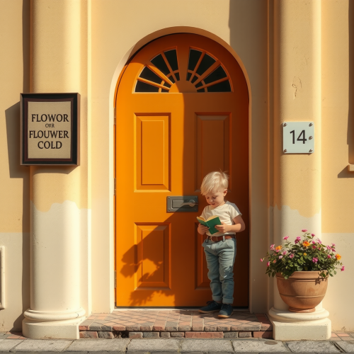 a bright and colourful cartoon painting of a cute little romanian boy looking at his dad with remorse, pointing to a broken vase on the floor. The image should be colourful and bright