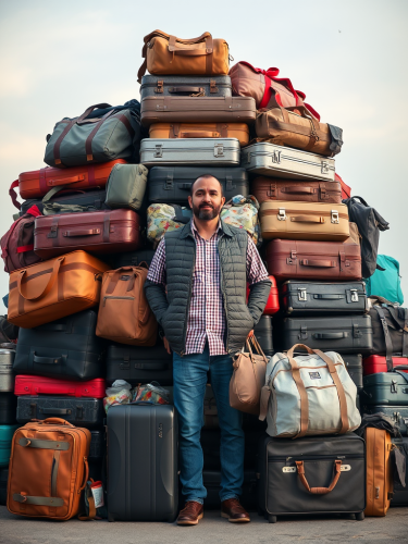 artistic Painting portrait of a 25 year old man, dark black hair, light but dark beard and brown eyes, light skin tone, sad and somber expression, rough navy blue shirt, outdoor sitting on the bench, natural lighting --ar 16:9