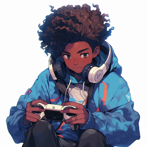 graphic art design illustration for a youtube channel, of a 11 year old dark skinned boy gamer, curly short hair , artitistic, cool, gamer core, graphic art. fun, delicate realism dynamic poses --s 250 --niji