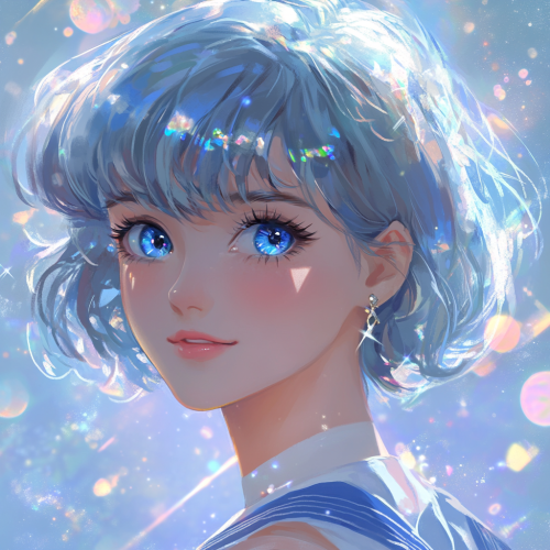 Takeuchi Naoko,Mizuno Ami,Sailor Mercury,a beautiful girl, short hair, light bule hair and blue eyes,long eyelashes,The background is the study,posh outfit,soft and soft colors are used with surreal portrait styles and fantasy illustrations,the ethereal background provides alovely catoon design,baodada,which softly lights up the dreamlike,digital art technology shows detailed strokes in high resolution in the style of afantasy illustrator,photo realisti