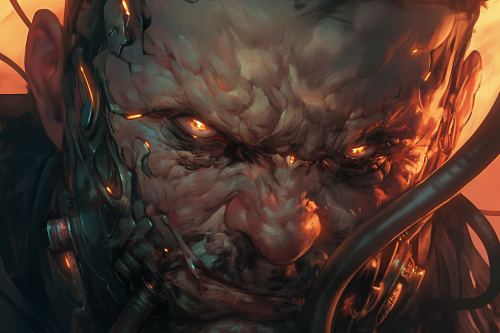 close up of face of man with messy black hair and cybernetic bottom half of his face screaming in pain + horror + art style of Capullo, Brom, Whelan, aly fell rutkowski, art germ, rossdraws, and franzzeta + art station + ultra detailed + hyper realistic + 8k --ar 3:2 --niji 6