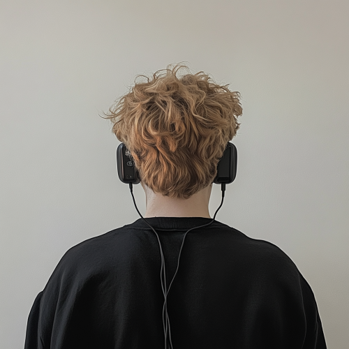 do a hyper realistic photograph of someone trying to download a video on their phone, but they can’t show it from the back of the persons head and of the phone, not downloading --s 250