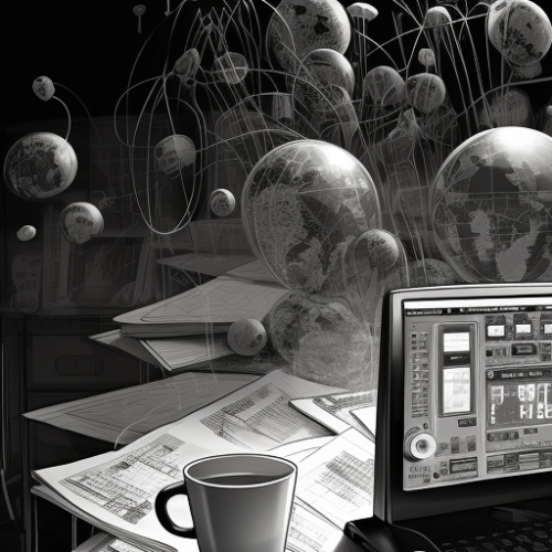 marketer at the computer and neural networks, neural networks, marketer, money on the table, realistic photography, --ar 4:3