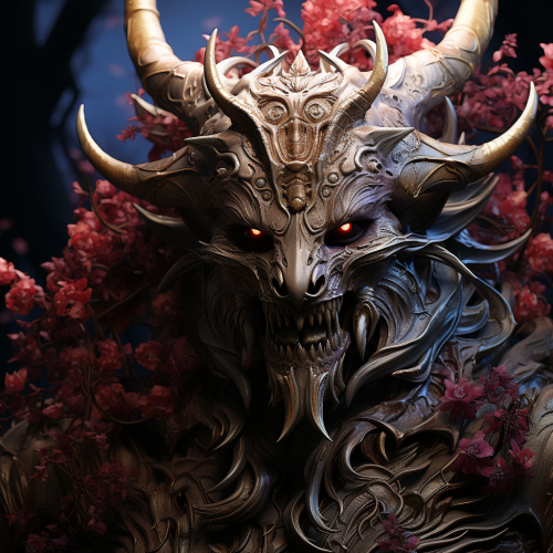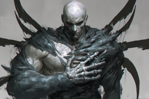 close up of face of giant muscular monster with a bone exoskeleton armor and a evil skull head + horror + art style of Capullo, Brom, Whelan, aly fell rutkowski, art germ, rossdraws, and franzzeta + art station + ultra detailed + hyper realistic + 8k --ar 3:2 --niji 6
