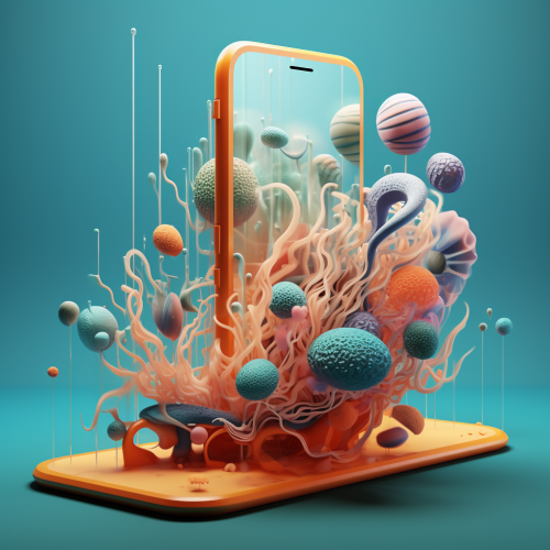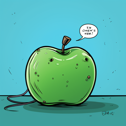 a green apple that is connected to a USB Cable and that had a conversation bubble that is blue