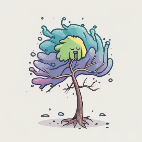 cute winter tree isolated white background,sticker art design, illustration, simple lines, graphic novel style, 2d painting, ink painting style, trending on art station, digital art, watercolor, pixar style cartoon, line work, minimalist --v 4 --no text,shadow