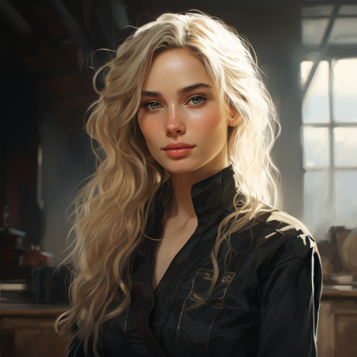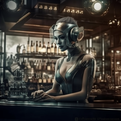 female cyborg bartender in a futuristic 1920s bar --v 5.0 --s 750