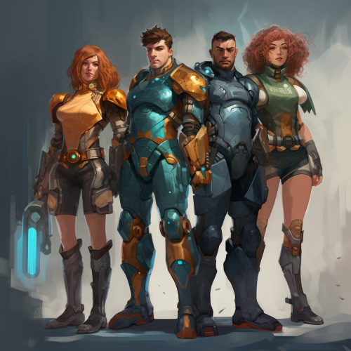4 ghostbuster kids, back lit, long shadow, little-flat Graphic Design, By Mike Mignola, hyper maximalist, vibrant colors, hd extremely detailed digital art, key visual, cover artwork, isolated on dark background, ultra-detailed, --niji 5 --ar 2:3