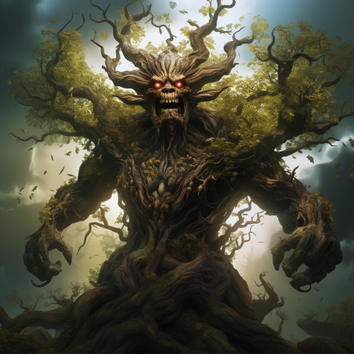 Grimdark mystic primordial ageless oak treant , fantasy, digital art, masterpiece painting, ultra detailed, ultra high definition, 8K resolution, 3D shading, superior quality, cover illustration, complex design, luminous highlights, deep rich vibrant colours, hyperrealistic, meticulously hyper detailed, artstation
