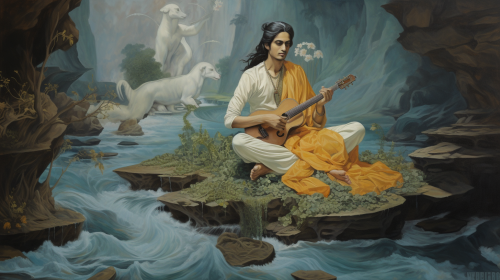 A man stands amidst a storm cloud, crackling with lightning. His face, serene yet powerful, radiates with an otherworldly intensity. This depiction, inspired by realistic fantasy artwork, showcases a palette of dark azure and light amber, creating a dramatic contrast. The artist takes inspiration from impressionistic techniques, capturing the essence of the moment with bold brushstrokes and dynamic composition. The artwork, set against an ultra HD backdrop, explores the depths of psychological phenomena through the lens of celestialpunk aesthetics. --ar 16:9