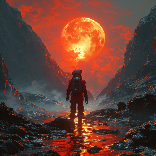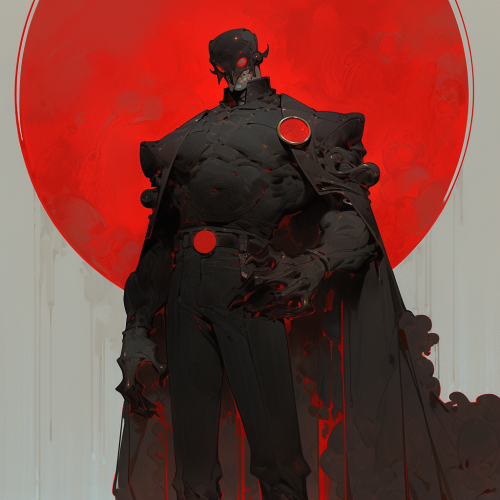 a person in a black suit with large collars in a black slime suit standing towards facing the red moon , anime style, high fantasy, digital art, masterpiece painting, ultra detailed, ultra high definition, 8K resolution, 3D shading, superior quality, cover illustration, complex design, luminous highlights, rich vibrant colours, hyperrealistic, meticulously hyper detailed, high contrast, artstation --s 750 --v 6.0