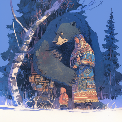 a male goldilocks and three bears at night outside a little cottage in the woods in the style of shadow box fairy tale story --s 50