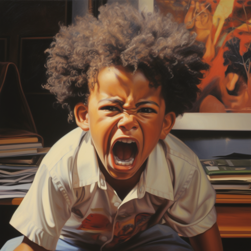an african american boy child, throwing an temper tantrum, yelling at parents, setting should be retro late 80's early 90's year. hyper realistic