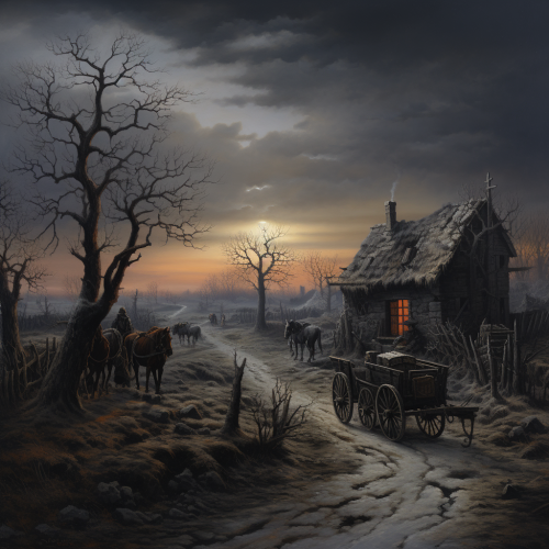 greedy wolf give a one coin to little red riding hood dark purple halloween illustration --ar 2:3 --v 5.2