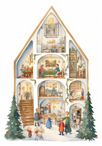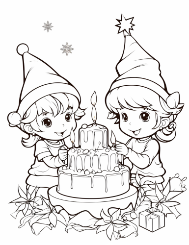 Faries celebrating Christmas. Black and white only. Outline only. --ar 85:110 --style raw --v 5.2 --s 50
