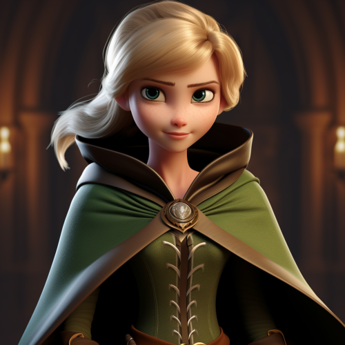 cinderella, short blonde hair, bangs, leather armor, gray cloak, angry, style: disney animated style 3d animation
