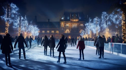 Envision and craft a captivating and magically minimalist illustration against a sumptuous dark green background. Weave enchanting, feminine Christmas elements in red, white, and gold as if they were born of fairy tales. Think of subtle holly berries shimmering with an otherworldly glow, garlands gracefully appearing with a wave of a magical wand, and tasteful gold accents that sparkle like stardust.